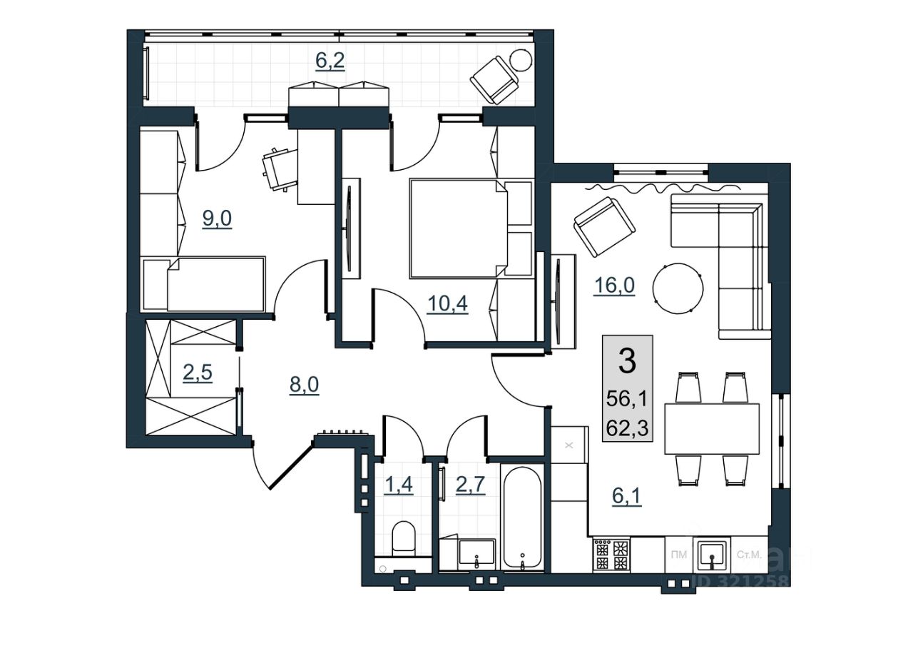 62 м² · Этаж 4 из 10