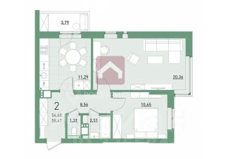 Продается двухкомнатная квартира в новом строящемся доме Заводского района на территории бывшего Авиационного завода. Сдача дома весна 2025 года. Авиатор 3, Только наличный расчет!Номер объекта: #1/578242/14977