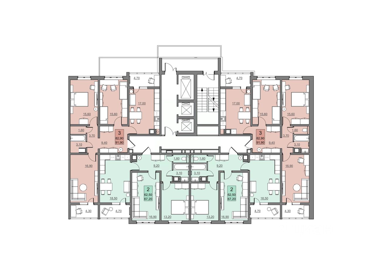 62 м² · Этаж 17 из 24