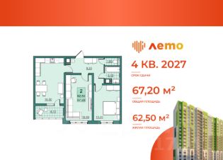 Комфортная двухкомнатная квартира с предчистовой отделкой!Квартира имеет площадь 67,2 м2. В просторная гостиной 16,9 м2 можно разделить зоны на рабочую и зону отдыха. Кухня 18,5 м2 с выходом на лоджию с панорамным остеклением позволит разместить обеденную зону, зону отдыха и небольшой домашний огород. Спальня 13,9 м2 станет местом уединения, в которой можно будет разместить не только большую двуспальную кровать, но и систему хранения или туалетный столик, не перегружая пространство.Квартира базово продается в предчистовой отделке, мы уже сделали за вас все черновые работы. Вы получаете квартиру с монтажом межкомнатных перегородок, звукоизоляцией пола во всех помещениях кроме лоджии и санузла, гидроизоляцией пола в санузлах, полусухой стяжкой полой (включая лоджии), штукатуркой стен, монтажом подоконных досок и оконных откосов, выводом труб холодного и горячего водоснабжения в санузлах. А если вы хотите заехать в уже готовую квартиру, то можете заказать чистовую отделку от застройщика. Стоимость отделки можно включить в ипотеку!Подъезды выполнены по дизайн-проекту. Современная отделка, бесшумные скоростные лифты. Предусмотрена установка всей необходимой навигации в подъезде. На первом этаже расположены велосипедная и колясочная, доступ к которой имеют только жители дома. Для вашего удобства мы предусмотрели сквозной проход с выходами на стоянку и двор без машин. Теперь вы можете спокойно отдыхать без гула автомобилей или заходить с пакетами с той стороны, которая вам будет по пути!Предусмотрена огороженная территория, установка умной домофонии (видеовызовы, история вызовов, вход без ключа, удаленный доступ из приложения). Современные спортивные ворк-аут зоны и детские площадки с безопасным покрытием во дворе.Своя управляющая компания! Охватываем все возможные направления работ по уходу за территорией и домом: уборка в местах общего пользования, ухаживание за растениями и зелеными зонами, обслуживание лифтового оборудования и т.д. Собственное приложение для отправки данных по счетчикам и формирование заявок о необходимых работах по дому. Следите за выполнением!Сроки сдачи дома - IV квартал 2027 года.ЖК Лето расположен в развивающемся районе Солнечный-2, 11-й микрорайон. Здесь есть все для комфортной жизни: аптеки, магазины, поликлиники и пр. Через дорогу от дома расположен новый Семхоз Парк! Для более оживленных прогулок недалеко находится бульвар Героев Отечества. А для шоппинга ТЦ Хэппи Молл!Возможна покупка в ипотеку! Объект аккредитован во всех ведущих банках страны. Наш ипотечный брокер совершенно бесплатно подберет наиболее выгодную для вас ипотечную программу с комфортными ежемесячными платежами. Вы можете оформить сделку под ключ - мы поможем с оформлением всех документов, в течении всей сделки и до получения ключей ваш будет курировать личный менеджер, который ответит на любые ваши вопросы.Ждем вас в нашем офисе продаж!