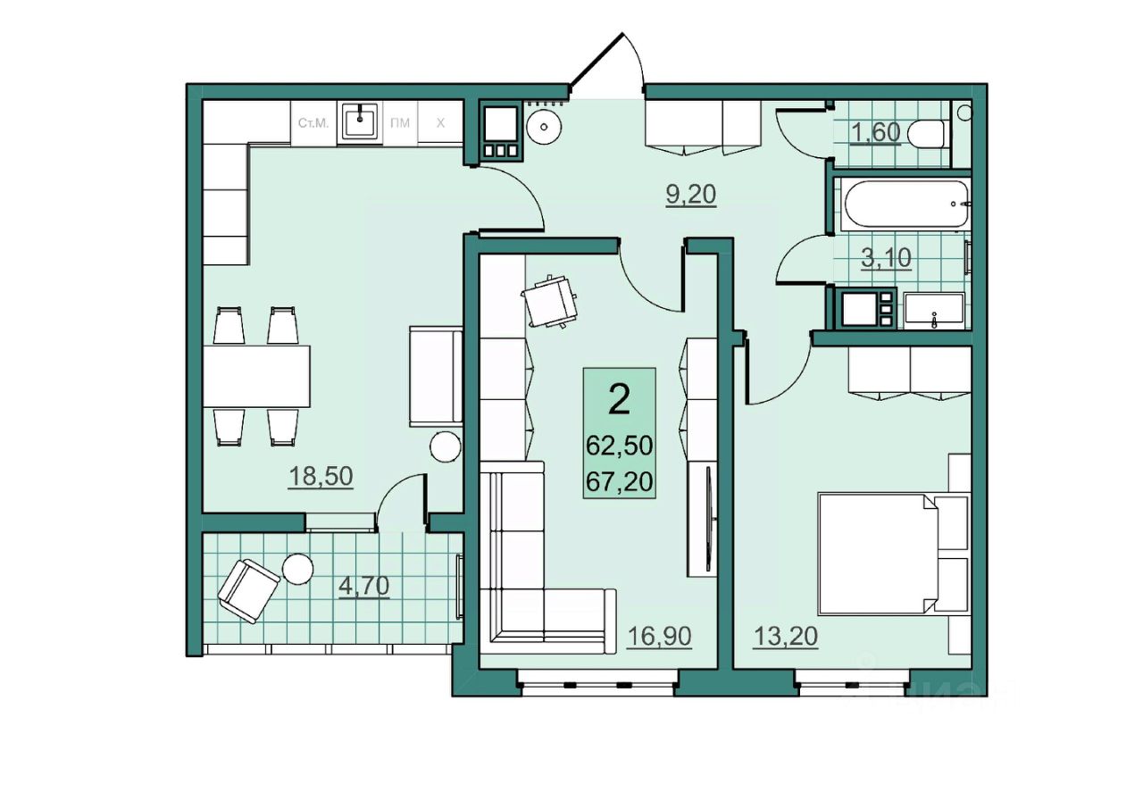62 м² · Этаж 9 из 10