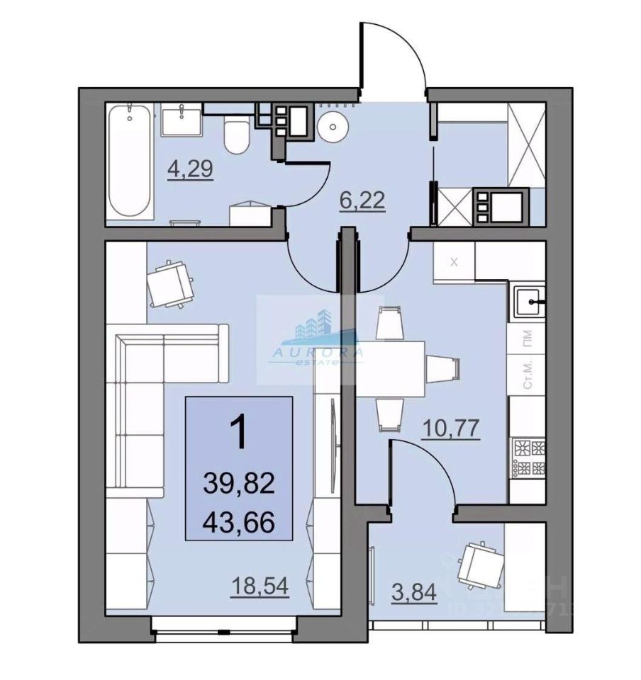 43 м² · Этаж 4 из 24