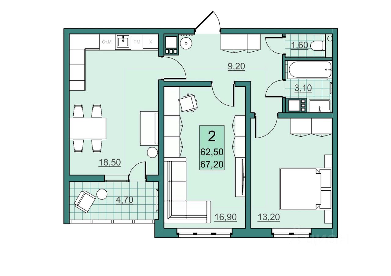 62 м² · Этаж 2 из 10