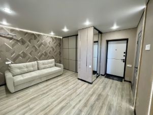 Новая евро 2-комнатная квартира, ЖК Апельсин.В квартиры выполнен качественный ремонт, установлена мебель, технически оснащена и полностью готова к потенциальному заселению. На входе установлен шкаф для верхней одежды, далее просторная кухня-гостиная оснащена большим диваном (с возможностью использования спального места, в разложенном состоянии полноценная двуспальная кровать) установлен вместительный шкаф-купе, с гостиной открывается вид на кухонную зону(установлен кухонный гарнитур, а так же технически оснащен варочной панелью/духовым шкафом/вытяжкой и широко форматной раковиной с различным функционалом), изолированная спальная комната в которой имеется парящая двуспальная кровать, матрас и прикроватные тумбы, обустроенная ванная комната со всеми выводами под стиральную машину/водонагреватель, остекленная лоджия. Различные виды освещения, декоративных элементов. Прекрасное месторасположение, в шаговой доступности школа/детский сад/медицинские учреждения/торговый центр, транспортная развязка. Фотографии соответствуют действительности. В квартире ни кто не жил, обременения отсутствуют. Быстрый выход на сделку.