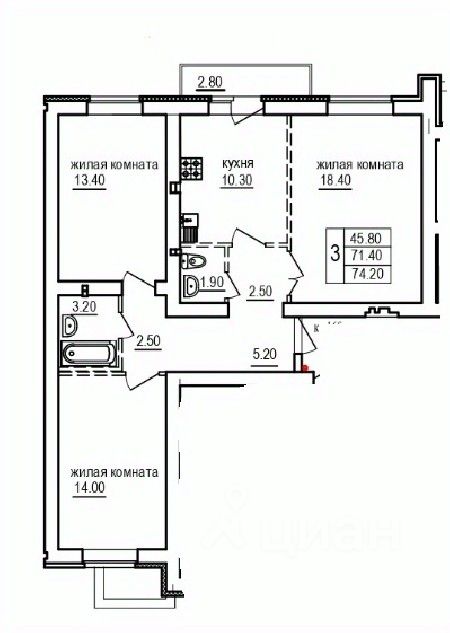 74 м² · Этаж 10 из 10
