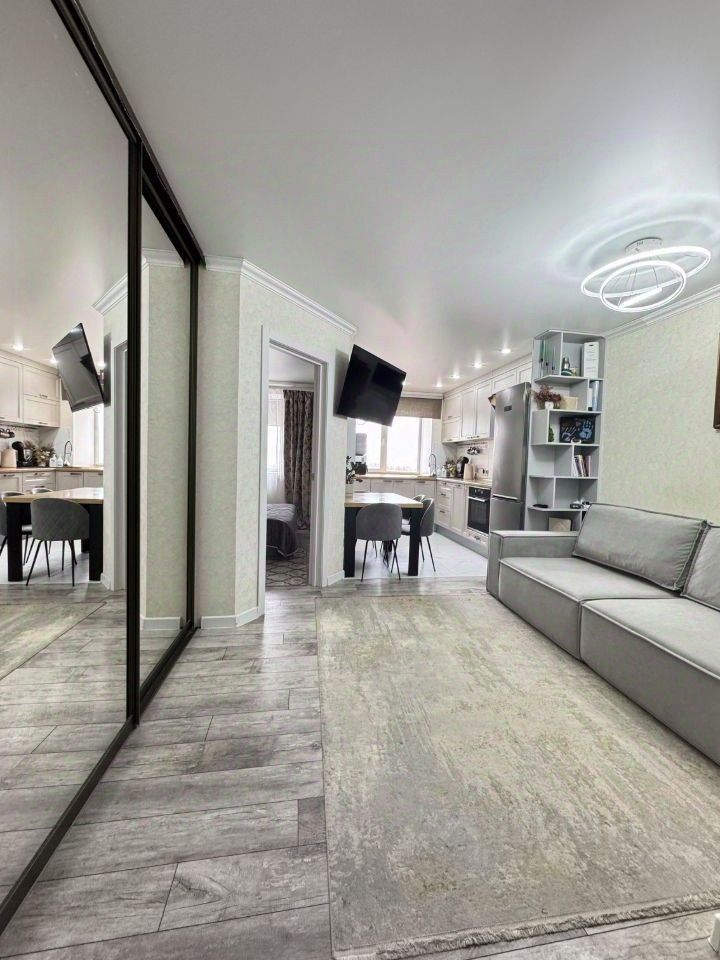Продается замечательная трех комнатная квартира . Выполнен дорогостоящий ремонт из качественных строительных материалов.Просторные комнаты расположены на две стороны, особенная планировка для этих домов . На две стороны . Лоджия застекленная панорамным окном . Квартира из двух изолированных комнат и кухни - гостиной. Имеется большой гардероб . Квартира полностью укомплектована . Продается почти со всем , что на фото .(кроме мягкой мебели и телевизоров ) В квартире дорогая техника Electrolux. - Посудомоечная машина - Духовой шкаф - Варочная индукционная панель - Холодильник - Вытяжка - Стиральная машина - Кондиционер - Водонагреватель В этом доме маленькие коммунальные платежи , так как своя котельная . Рядом магазин Лента , МБЛ, сады . В подъезде на 1 этаже располагается частный детский сад . Квартира в собственности 5 лет. Подходит под все виды расчетов(ипотека, мат.капитал, сертификаты).