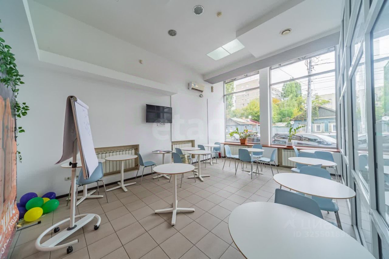 Двухэтажное здание расположено в центре Саратова на улице Университетская рядом с улицей Б. Казачья. Продается полностью укомплектованное оборудованием помещение, состоящее из 1 и 2 этажа + антресоль. Планировка первого этажа свободная. Широкие окна. На первом этаже расположен большой зал с линией раздачи и антресоль общей площадью 395 кв.м. Выполнен отличный ремонт в стиле лофт. На втором этаже площадью 170 кв.м. расположена кухня и подсобные помещения. Все соответствует требованиям санпин. Есть лифт для транспортировки готовых блюд на 1 этаж. Имеется своя котельная с бойлером. Приточно-вытяжная система вентиляции. Выделенная электрическая мощность 100 кВт. Помещение расположено на первой линии. Отличный обзор с улицы. Перед зданием имеются парковочные места. Есть запасной выход во двор. Помещение С АРЕНДАТОРАМИ! Удобная транспортная доступность. В окружении объекта Саратовский государственный университет, торговые предприятия, жилые дома. В двух кварталах расположен железнодорожный вокзал города.