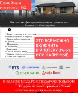Вам могут построить такой же каменный дом Балашовском районе за наличные или семейную ипотеку под 6% годовых - маленькие платежи в сравнении с базовой ипотекой (19%). Наш застройщик строит быстро и самое главное готов приехать к нам в Балашов. Материал закупает в Саратове. Сотрудничаем давно.Строит дома со следующими характеристиками:• МАТЕРИАЛ СТЕН: кирпичные блоки, газосиликатный блок, каркасные стены(выйдет дешевле каменного), брус, СИП (дешевле всего)• ПЛОЩАДЬ: от 50 м²• СРОКИ: от 4 до 6 месяцев.• СТОИМОСТЬ за м² уточняйте по телефону (всё зависит от материала) (отправлю вам популярные проекты домов с ценами). Можно согласовать индивидуальный проект. В в тело кредита и за наличные можно включить проводку, отопление, штукатурку, стяжку, окна и двери, утепление и отделку фасада и др. Также можно включить в кредит покупку земельного участка. Кстати говоря, Подберём или найдём вам земельный участок.- Застройщик с опытом строительства более 7 лет.- Гарантия на работу 10 лет.- Аккредитован в Сбере, ВТБ, Альфе, Т-Банк, ДомРФ и др.. ИПОТЕКА ПОД 6% ДОСТУПНА:•У вас хотя бы один ребёнок до 6 лет включительно•У вас один несовершеннолетний ребёнок с инвалидностью•У вас два ребёнка и они несовершеннолетние Можете использовать материнский капитал как первоначальный взнос, который составляет 20%.• Если вы многодетная семья, то вам доступна субсидия на досрочное погашение кредита на сумму 450 т.р Никакой комиссии при покупке. Для клиентов Этажей застройщик делает стяжку пола или септик в подарок.Проконсультируем в офисе и по телефону Код пользователя: 135128Номер в базе: 7775664