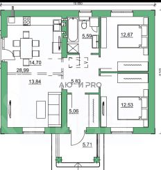 Дом 90 кв.м. в развивающемся коттеджном поселке ТСН ''Северное сияние'' в районе Кумысной поляны. Дом с отделкой из облицовочного керамического кирпича, , ленточный фундамент глубина 1,7 м, кровля - металлочерепица. При строительстве и отделке используются качественные дорогие материалы. В доме вода и свет, газ на участке, водоотведение - септик. Дома расположены на ровном участке без ям и низин, что исключает возможность подтопления территории во время паводков и обильных осадках. Территория охраняется - въезд через автоматический шлагбаум.Возможность приобретения в рассрочку.Одноэтажный дом с двумя комнатами 12,88 м и 14,34. Гостиная 15,88 м совмещенная с кухней 14,33 м. Есть возможность сделать третью комнату изолировав гостиную. Из кухни во двор ведет французский выход. В прихожей имеется ниша под шкаф, так же для хранения вещей предусмотрена гардеробная 2,55м. Имеется отдельная бойлерная, там можно разместить второй сан. узел. Жилой дом продается в 2 видах отделки: Предчистовая отделка включает: разводку электричества, теплый водяной пол, штукатурка стен, утепление крыши. Без отделки.