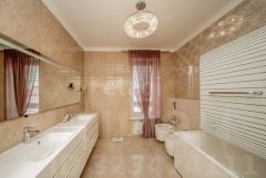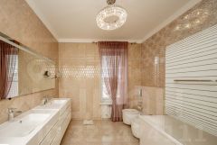 Продаю большой дом с отделкой и интерьером в классическом стиле!В отделке использовались натуральные добротные солидные материалы - полы во всём доме выложены дубовым паркетом, стены отделаны декоративной штукатуркой и лепниной ручной работы, потолки на первых двух этажах - штукатурка + лепнина, на третьем этаже - вагонка из дерева.Удобная лестница и балясины из массива дуба ручной работы, все двери на первом этаже тоже массивные и ручной работы.Классический стиль в интерьере - это просторные помещения и высокие потолки! Высота потолков во всём доме - 3,5 метра.Из просторного холла мы попадаем в гостиную с её колоннами, обилием локальных светильников и удобной итальянской мебелью из массива, обтянутой натуральной кожей.Гостиная соединена проходом с уютной светлой столовой, та - с кухней, а кухня с холлом. Отличное решение для навигации с точки зрения эргономики дома.Особенность столовой - камин в мраморном портале! Камин топится дровами, отлично работает, не чадит.Вся мебель на первом этаже итальянская из массива, в т.ч. и кухонный гарнитур.Второй этаж - спальный. Там расположились три спальни и просторный санузел с электрической сауной.Полки сауны сделаны из абаша, который подстраивается под температуру Вашего тела, а значит пребываение в сауне будет комфортным и безопасным.На третьем этаже расположились: бильярдная с прекрасным столом для снукера, комната свободного назначения (гостевая, спортзал) и кабинет-библиотека.Санузлы есть на всех трёх этажах. Также на первом и втором этажах имеются три застеклённые просторные лоджии. Все окна в доме пластиковые.На первом этаже летом прохладно без дополнительного охлаждения. Второй и третий этаж оборудован 6-ю кондиционерами.Дом не требует капитального ремонта, инженерные системы и коммуникации своевременно обслуживаются и поддерживаются в надлежащем состоянии.В 2013 году дом был утеплён и облицован, крышу перекрыли металлочерепицей.Во всём доме медная проводка, коммуникации - городские, слив - выгребная яма.2 газовых котла - основной и резервный, оба с климат-контролем, управляются пультом. Разводка отопления - полипропилен, зашита в стены.В основном владельцы используют воду из собственной скважины, но городская тоже есть. Также имеется мощный генератор на 4,5 кВт MOSA, всегда есть свет.Зимой коммунальные платежи не превышают 10 тысяч, летом без отопления - копейки.Во дворе имеется кирпичный гараж с хозблоком площадью 84 м2. В него помещается пара автомобилей, заезд с широкой улицы, оснащён автоматическими роллерными воротами. Такими же воротами оснащён главный заезд к дому.На заднем дворе есть небольшой бассейн с зоной отдыха, также имеется собственный пруд с мостком, который ведёт нас к беседке. По периметру дома растут огромные туи и ели. Но есть место и для лужайки.п.Зональный расположен в пределах города Саратов в районе гипермаркета Лента. Тихое спокойное место для загородной жизни. В посёлке локально есть всё необходимое.Добраться до Лемана Про или до пос.Юбилейный можно за 10 минут, тут сосредоточена вся необходимая инфраструктура. До центра Саратова - 15-20 минут.Локация отличная!Дом полностью мебелирован и готов ко встрече с новыми владельцами.Исходя из Ваших предпочтений, легко может преобразиться в современную классику через окраску стен и смену текстиля.Земля и дом в собств