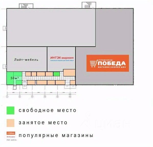 Торговые площади расположены на 2-м этаже торгового помещения. В помещении расположены магазин: ''Светофор'', ''Интэк'', продуктовые павильоны. Хорошая проходимость, т.к на территории расположены многофункциональные торговые точки.