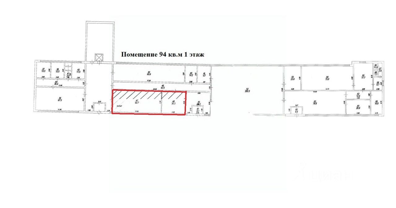Сдается нежилое помещение площадью 94 кв. м на 1 этаже.