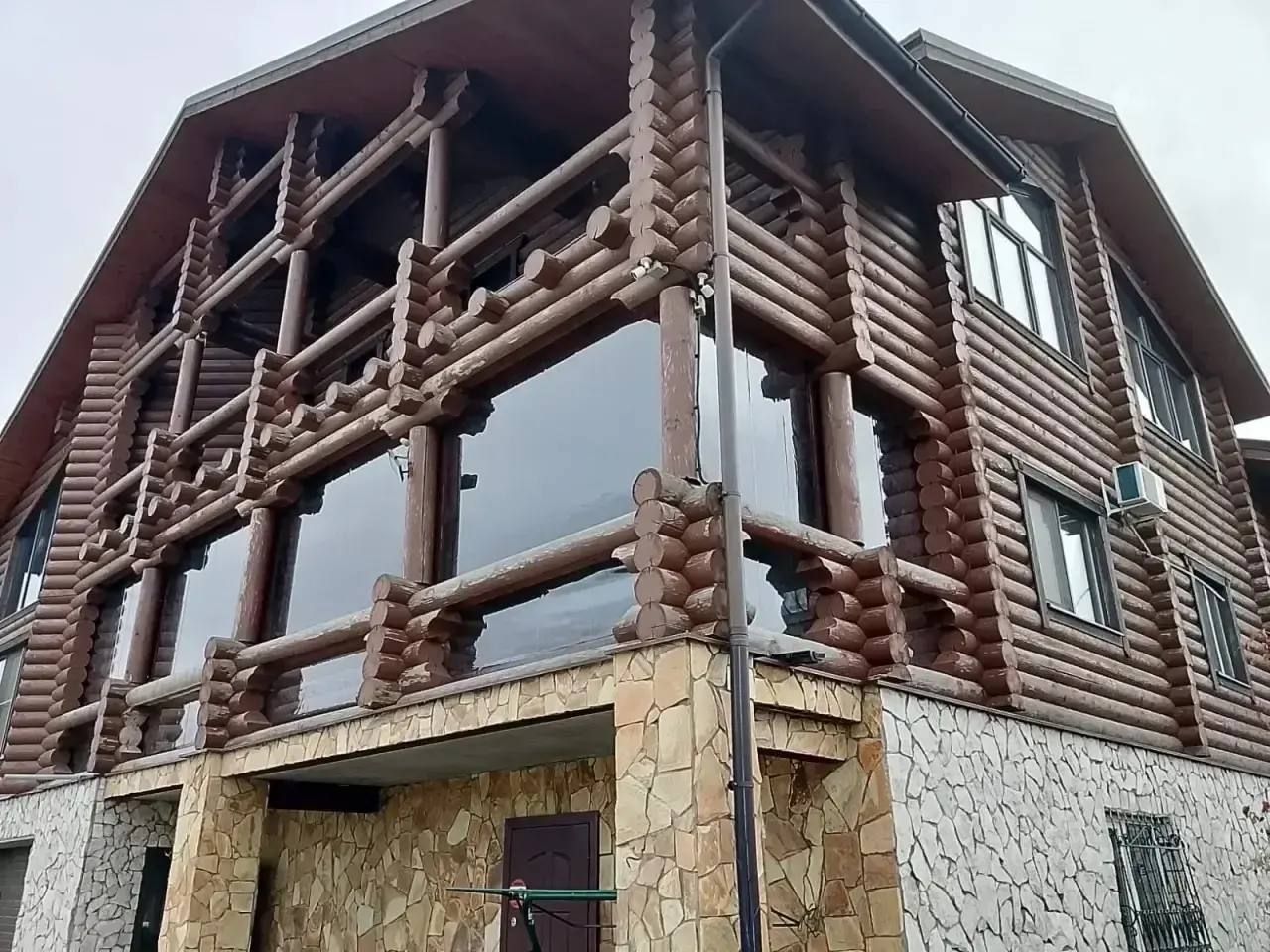 Первый этаж дома построен из кирпича, второй и третий сруб.