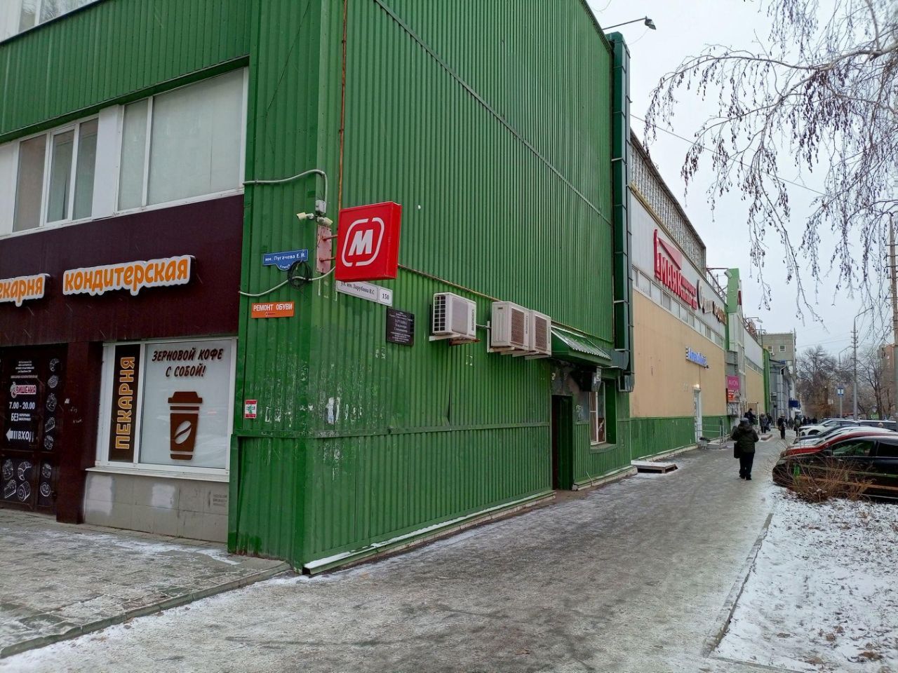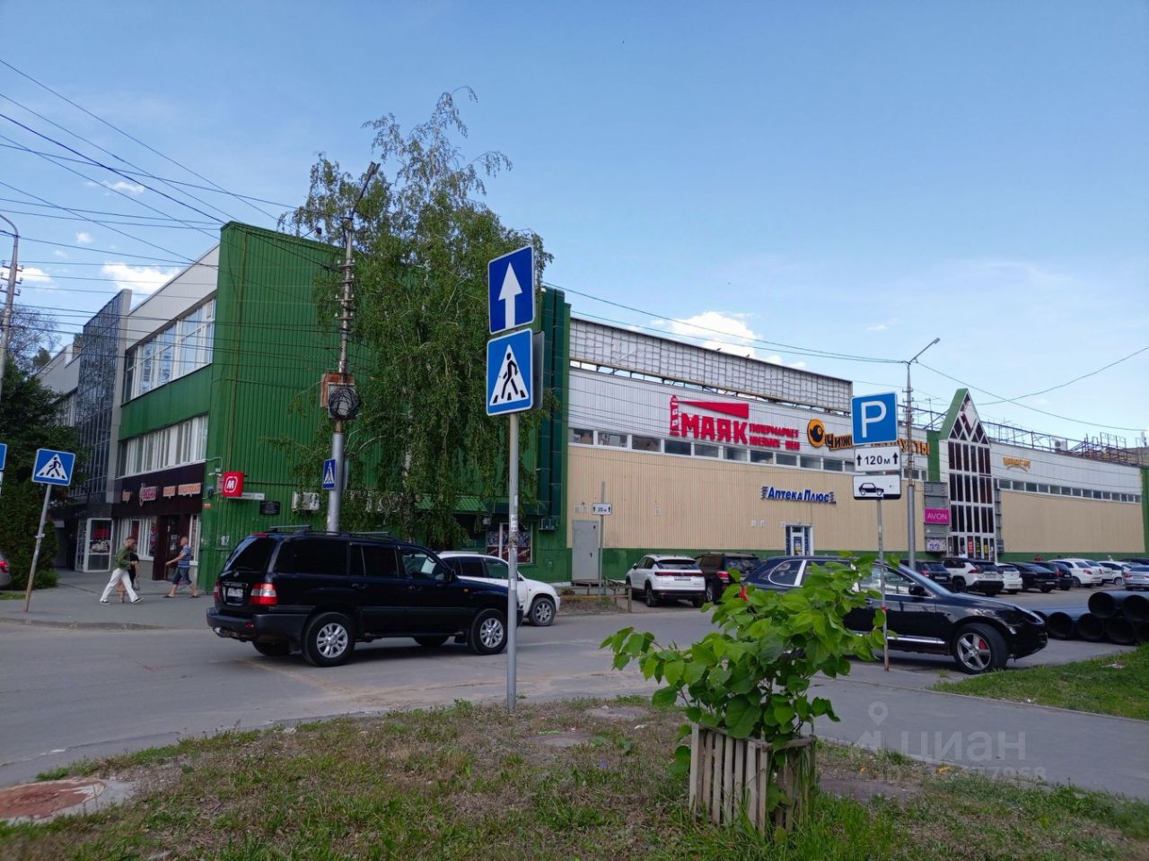 Стоянка автомобилей около здания,