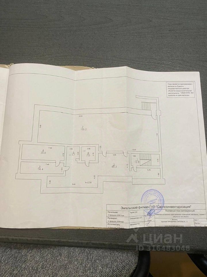 Дополнительная информация: Торговое помещение в центре г. Энгельса общий площадью 1256 м2 из них торговой площади 1 этаж 476 м2 помещение имеет два отдельных входа, цокольное помещение 155 м2. Запасной выход с отличным подъездом для грузовых и легковых автомашин. Ворота ( высота 4,10, ширина 3,70). В не посредственной близости магазины Магнит, Чижик, Банк ВТБ, Сквер Верным сынам отечества. Возможно деления торговых площадей. По всем вопросам можете обращаться к представителю собственника: Дмитрий П.