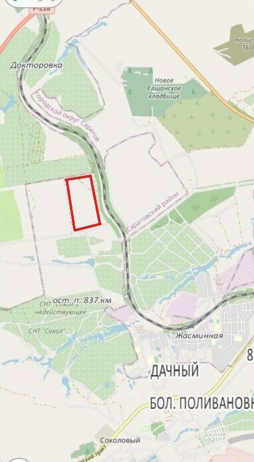 Продажа от СОБСТВЕННИКА ! БЕЗ КОМИССИИ для ПОКУПАТЕЛЯ ! Продаётся земельный участок 25 Га. на первой линии по адресу Саратовская область, г. Саратов, Соколовское МО, на расстоянии 4,2 км. северо-западнее пос. Соколовый, на объездной автодороге, в близи СКАД.