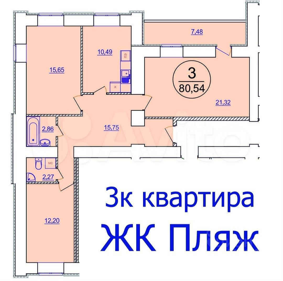 В продаже просторная 3 комн. квартира в новом кирпичном доме по улице Трудовая в ЖК Пляж.