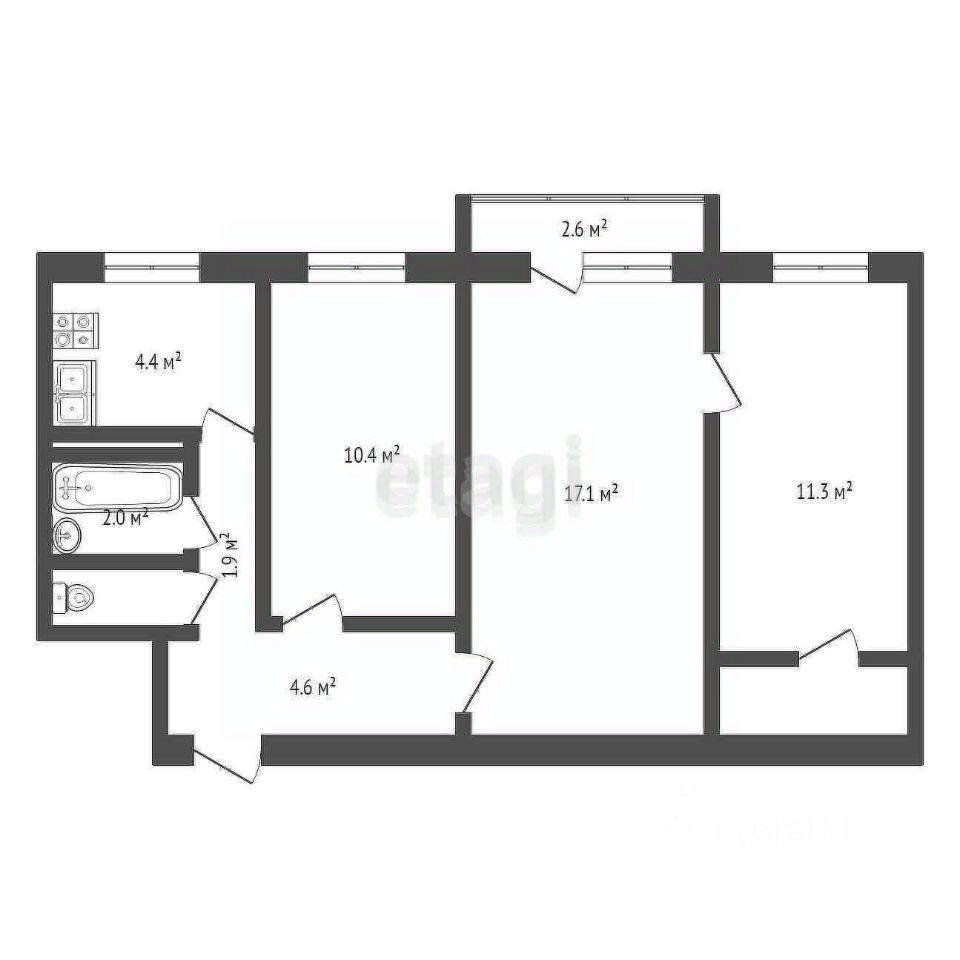 Продаётся трехкомнатная квартира в рабочем городке, общей площадью 55 квадратных метров.