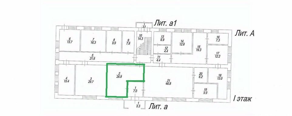 Сдается помещение свободного назначения площадью 26,8 кв. м на 1 этаже.