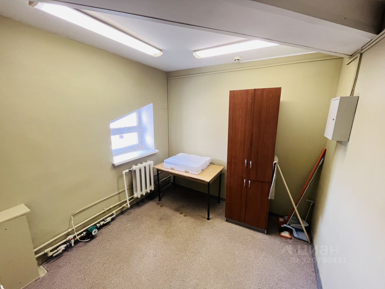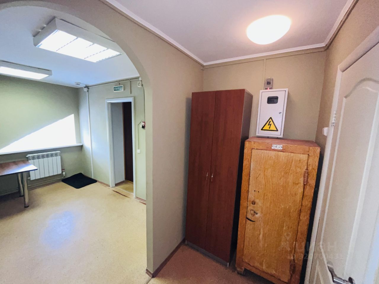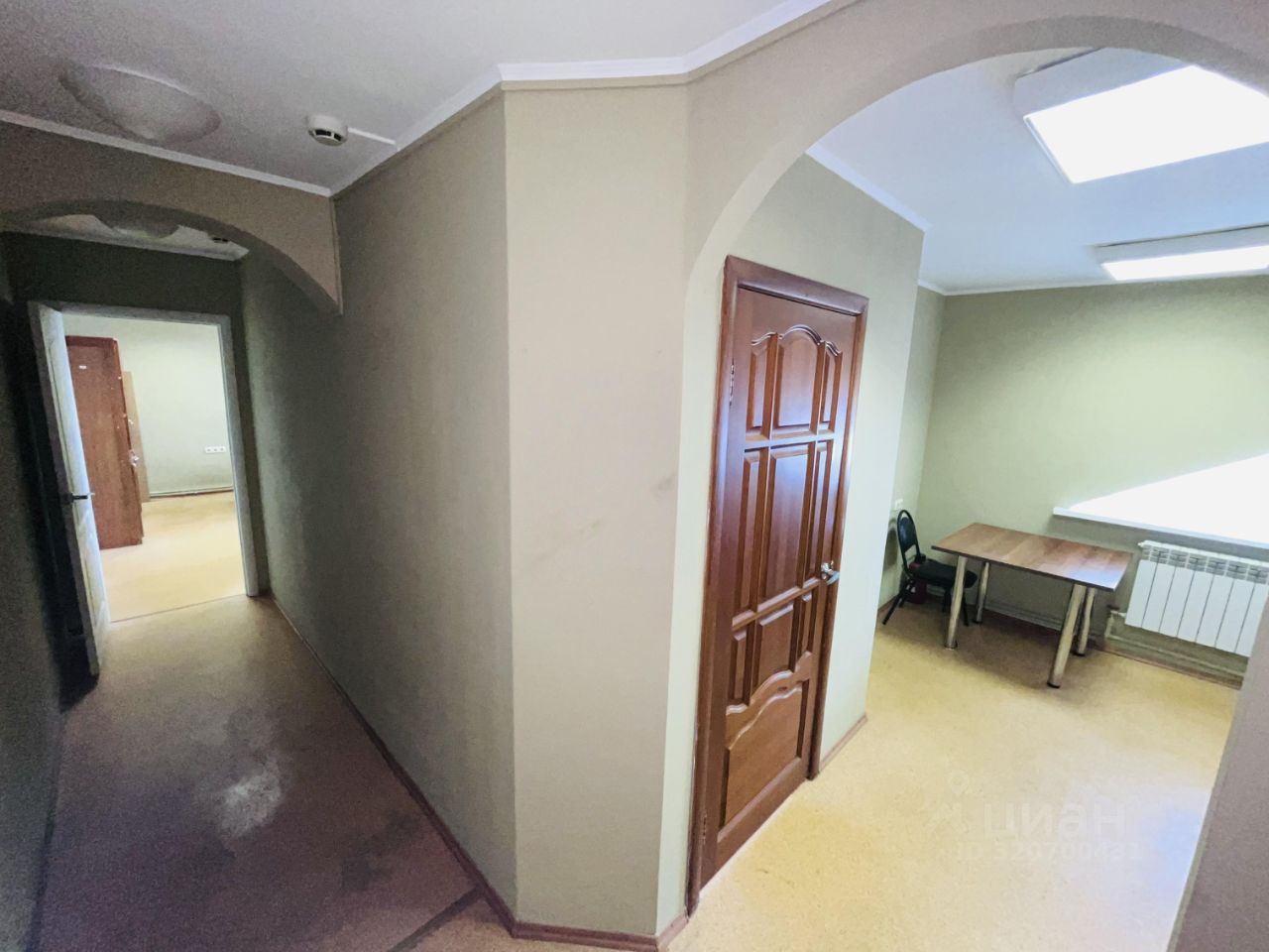 Выполнен косметический ремонт, стены окрашены, на потолке армстронг. Есть сан узел, 3 отдельных кабинета и 1 проходной, также есть место для ресепшена.