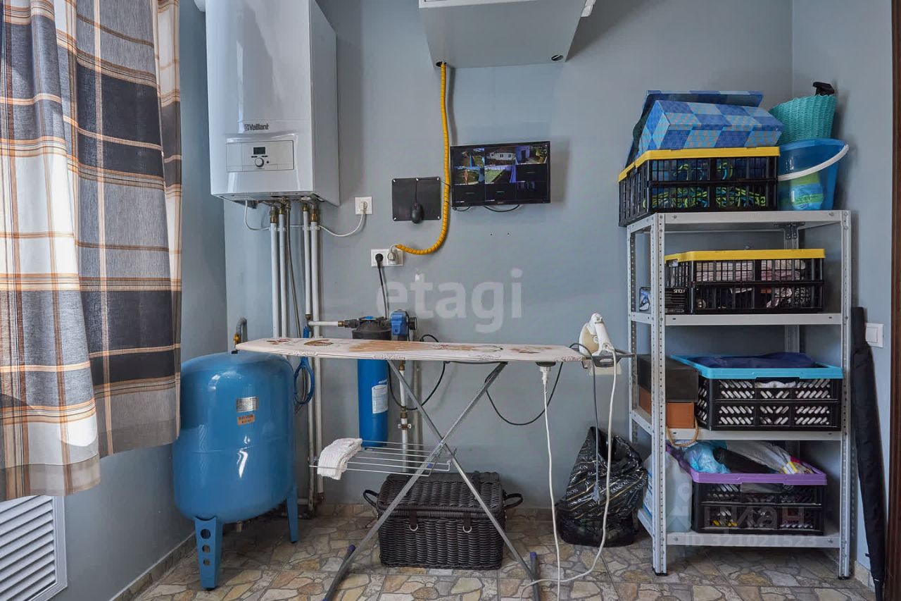 Подробнее: - Фундамент блочный, плиты перекрытия, кирпичные стены. - Удобное расположение дома на асфальтированной дороге, с газом, электричеством и водоснабжением. - Дом очень основательный и долговечный. - Водоподготовка и отопление работают в автономном режиме. - Установлена система видеонаблюдения. - Хозблок оснащен удобными металлическими стеллажами, есть крытая зона для барбекю и погреб с лестницей.