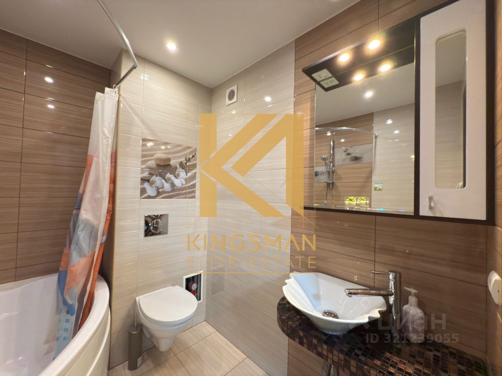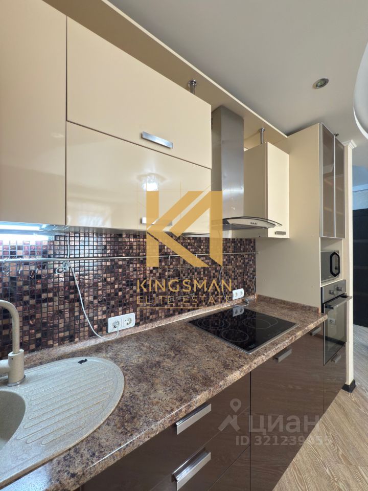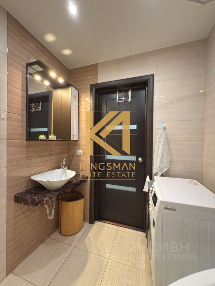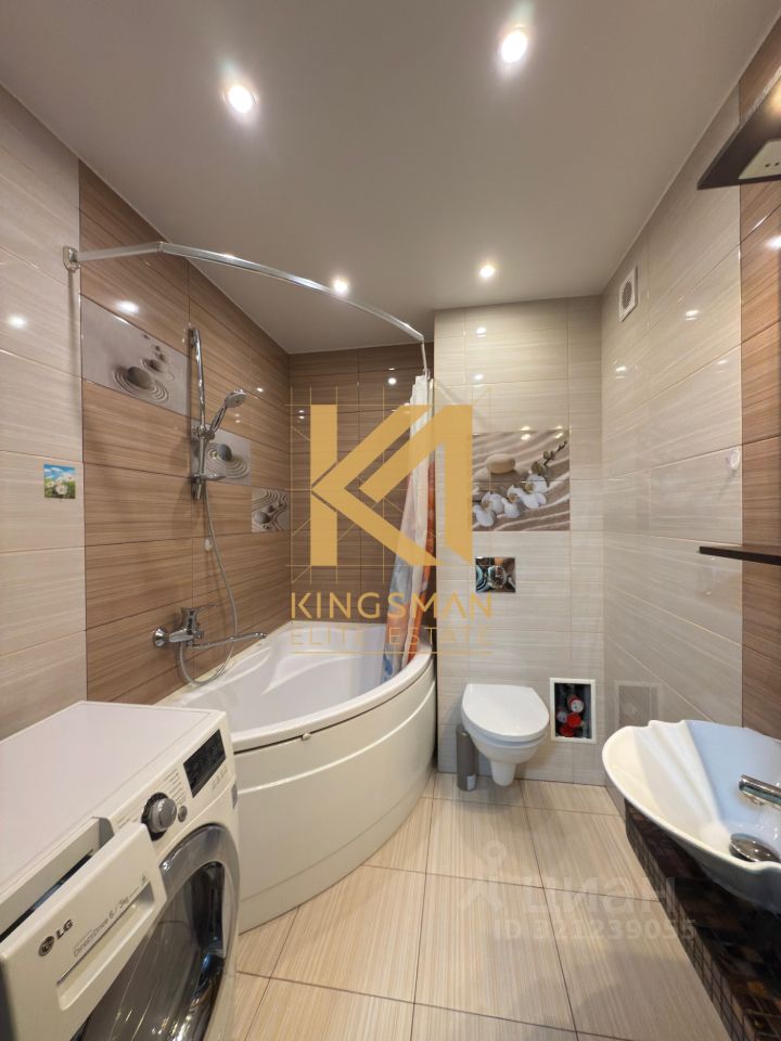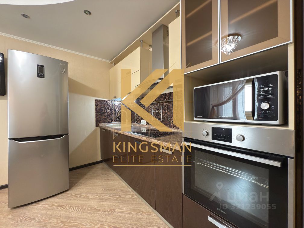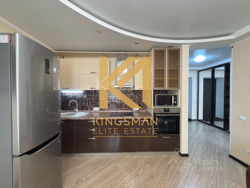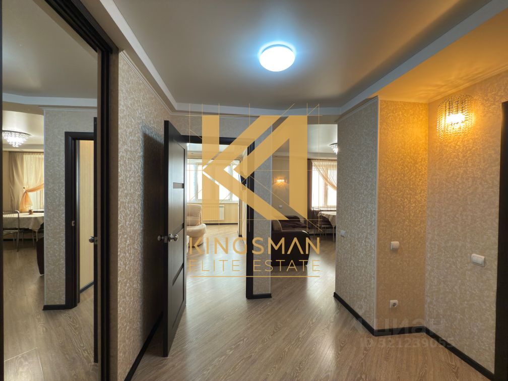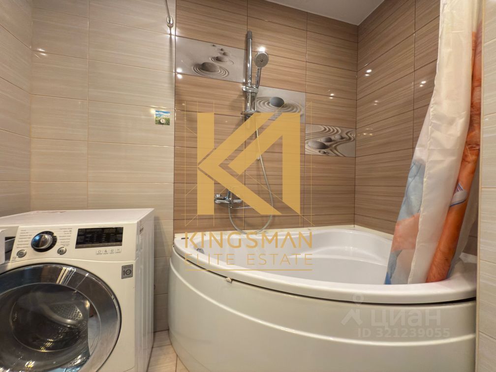 — На кухне установлен кухонный гарнитур с встроенной бытовой техникой, также дополнительное спальное место (диван). — В санузле установлена стиральная машинка. — Просторная гардеробная комната в коридоре.
