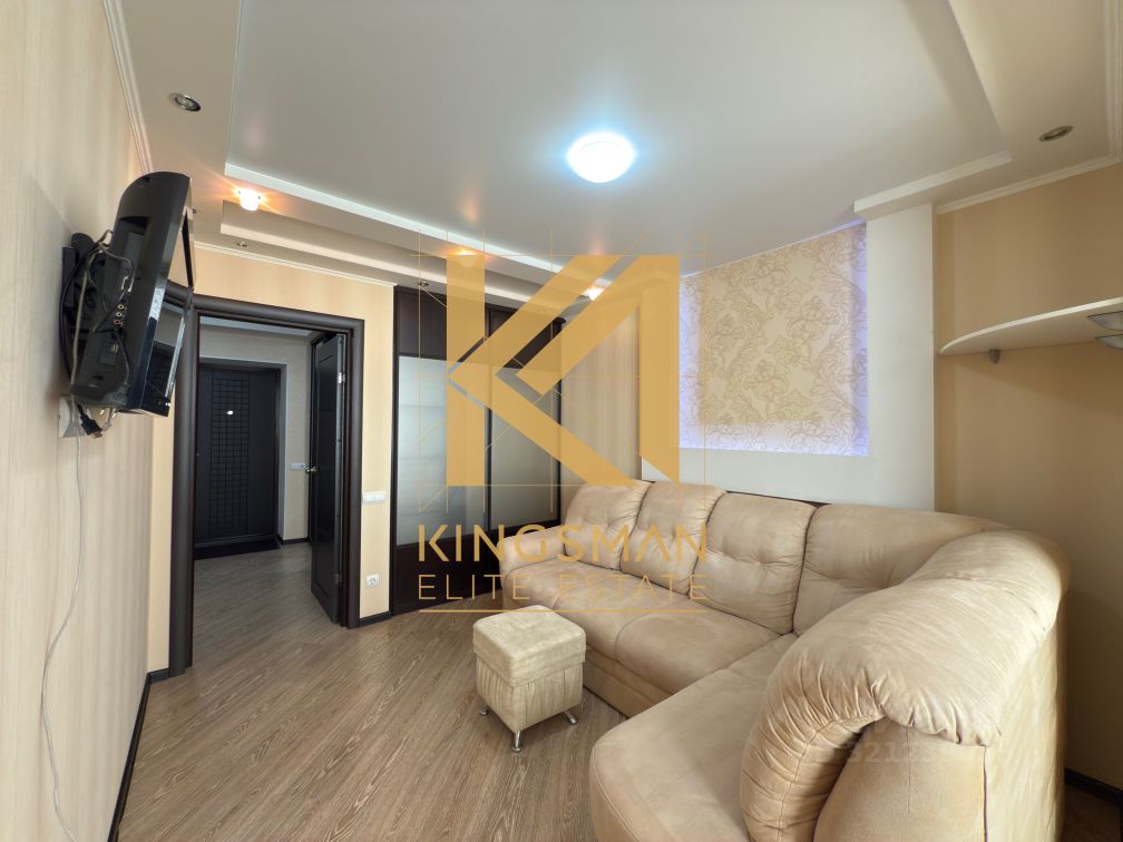 — Квартира укомплектована качественной мягкой и корпусной мебелью со встроенным шкафом купе, установлен 2-х диван ортопедическим основанием, рабочее место с видом на город, ТВ, сплит-система.