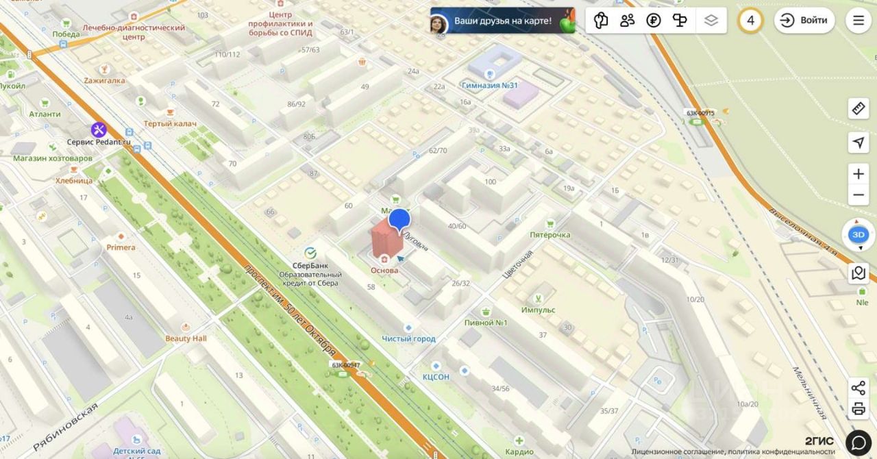 Большой жилой массив. Вторая линия от крупной транспортной магистрали 50 лет Октября.