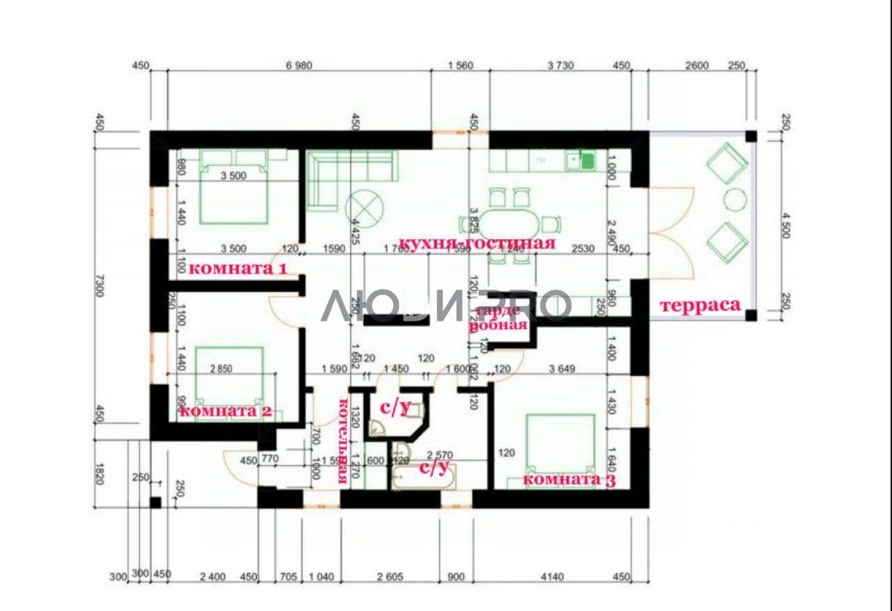 ПЛАНИРОВКА просторный холл с нишей под котельную, три изолированные комнаты по 12м2кв, просторная кухня гостиная 30м2кв, с выходом на террасу 20м2кв. с/у гостевой с/у совместный с ванной комнатой ниша под гардеробную