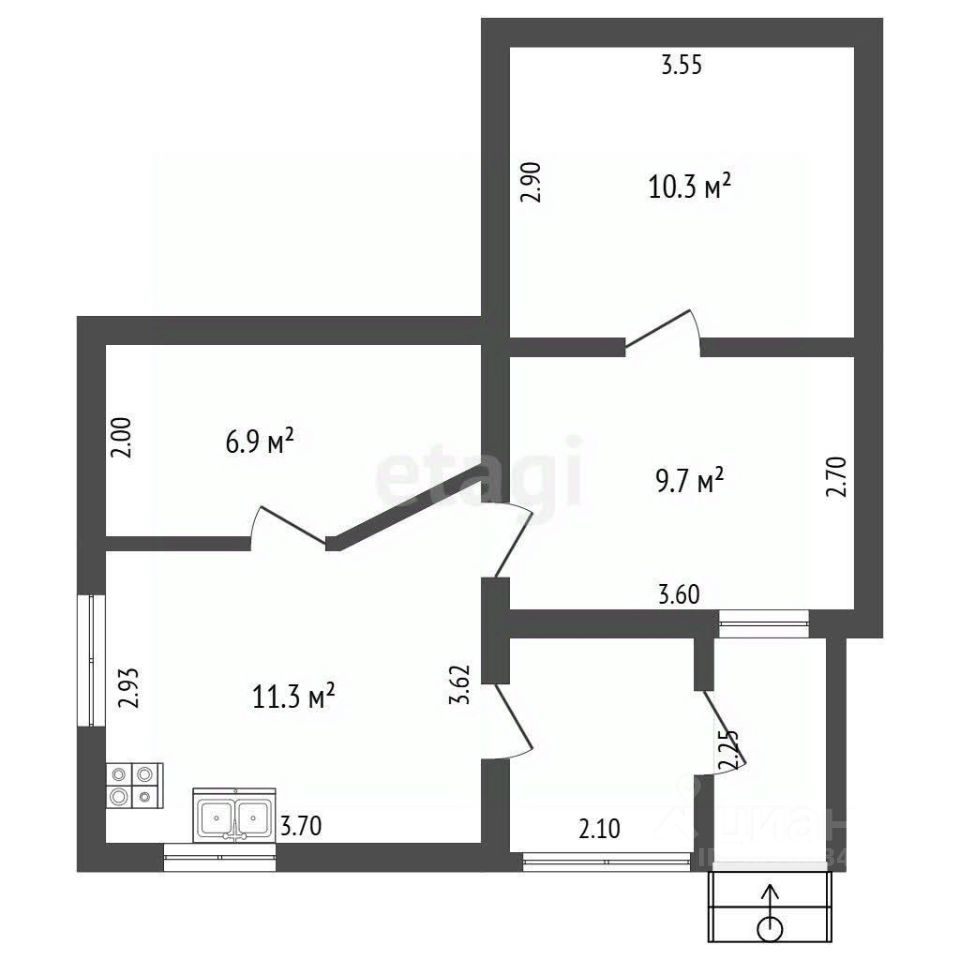 Дома включает в себя две комнаты, кухню и санузел.