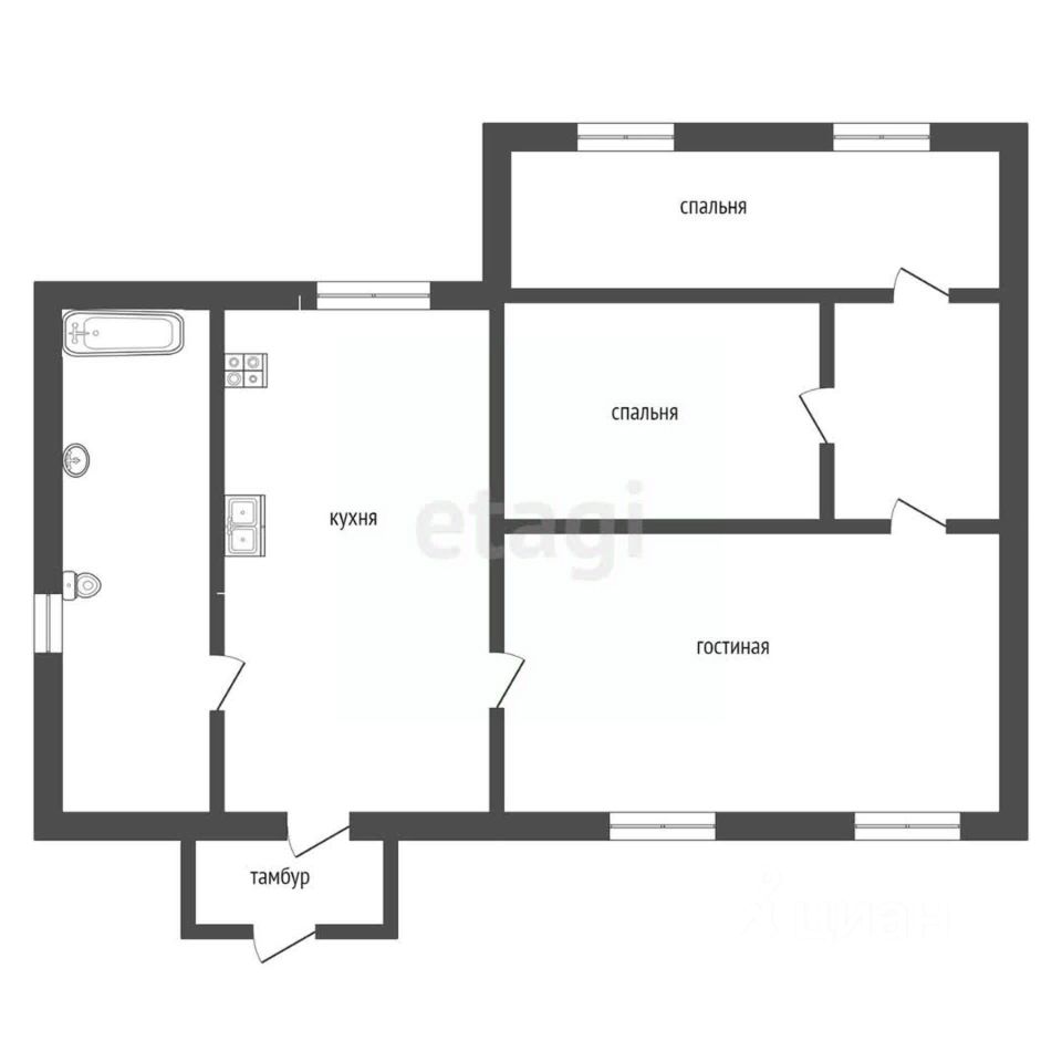 ПЛАНИРОВКА: - тамбур - кухня 8 кв.м - сан узел в доме 3 кв.м. - гостиная 15 кв.м. - 2 спальни 10 и 14 кв.м