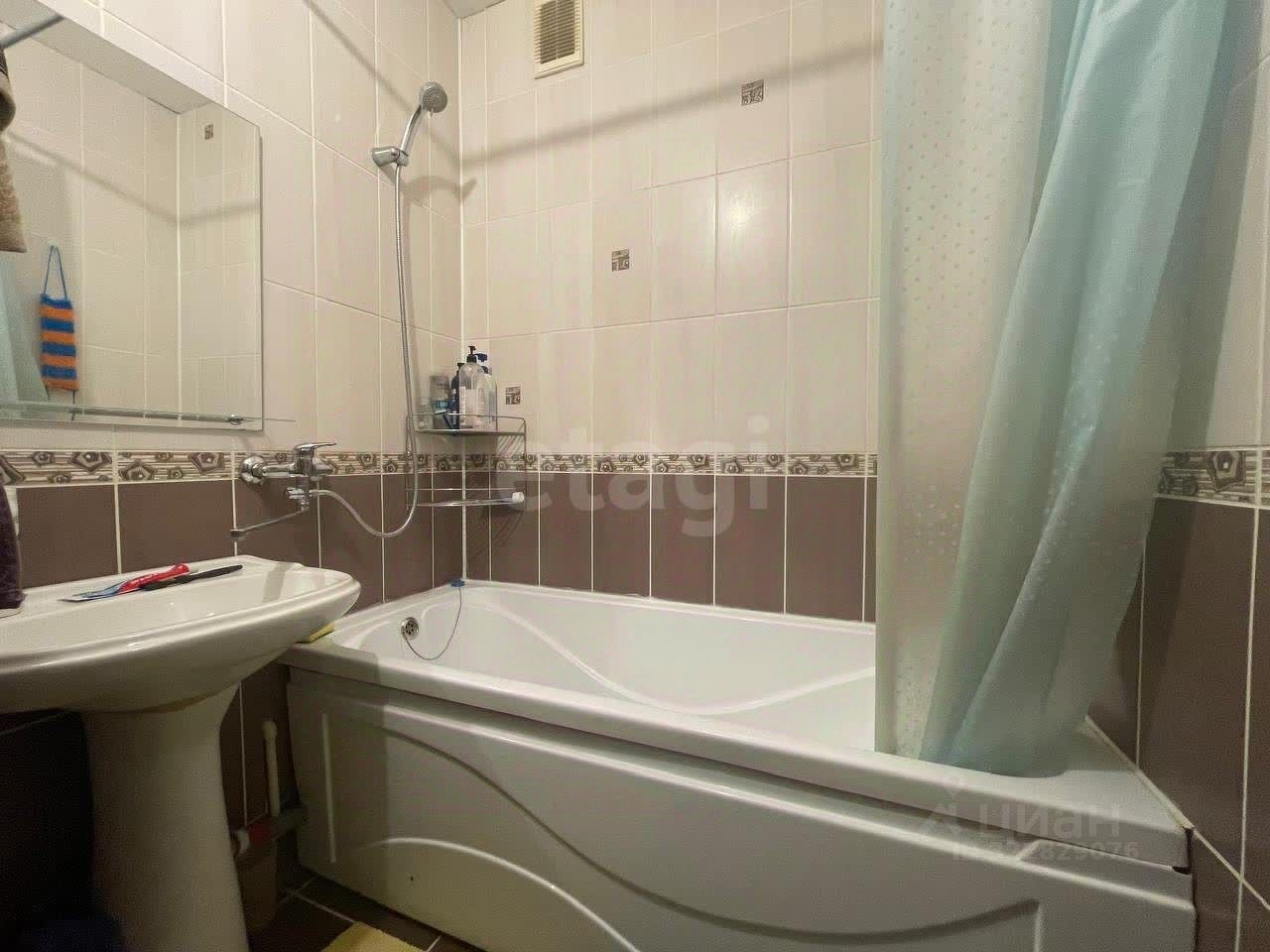 Планировка квартиры практична и хорошо продумана: изолированная комната, кухня площадью 9 кв. м и раздельный санузел, полностью отделанный кафелем.