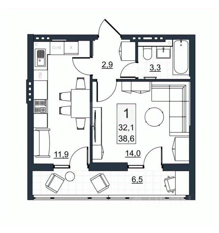 продам 1-к, Имени Евгения Долгина, 64 494 000 ₽