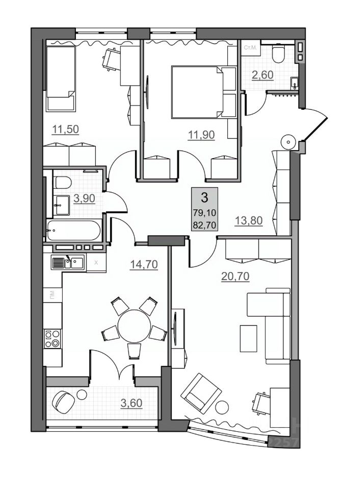 Общая площадь79,1 м2