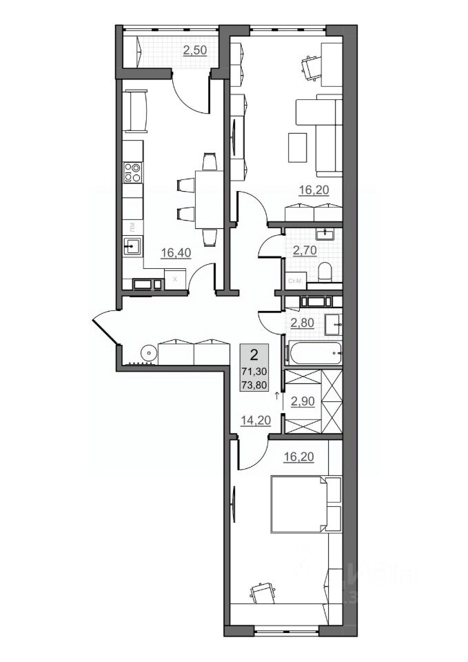 Общая площадь71,3 м2