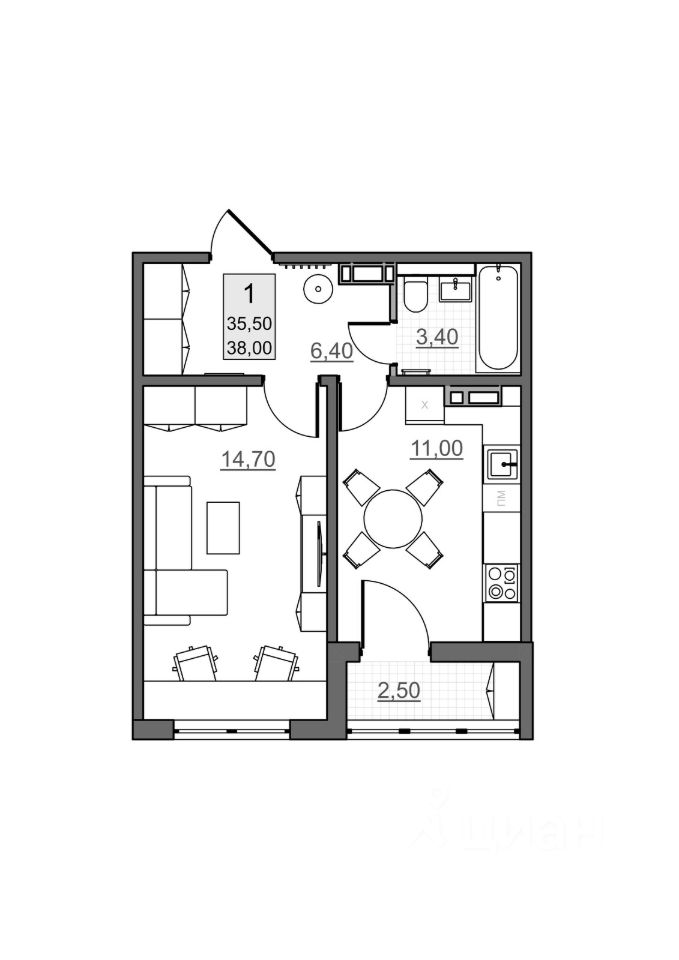 Общая площадь35,5 м2