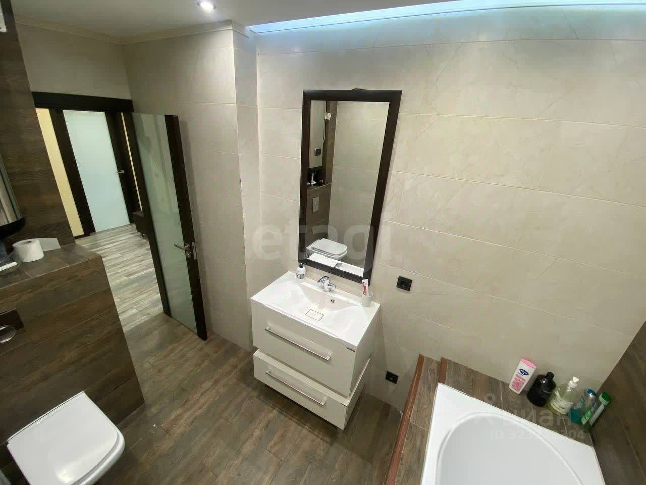 Санузел площадью 5.8м оснащен инсталляцией, полноценной ванной и тропическим душем, бойлером и выводами под гигиенический душ.