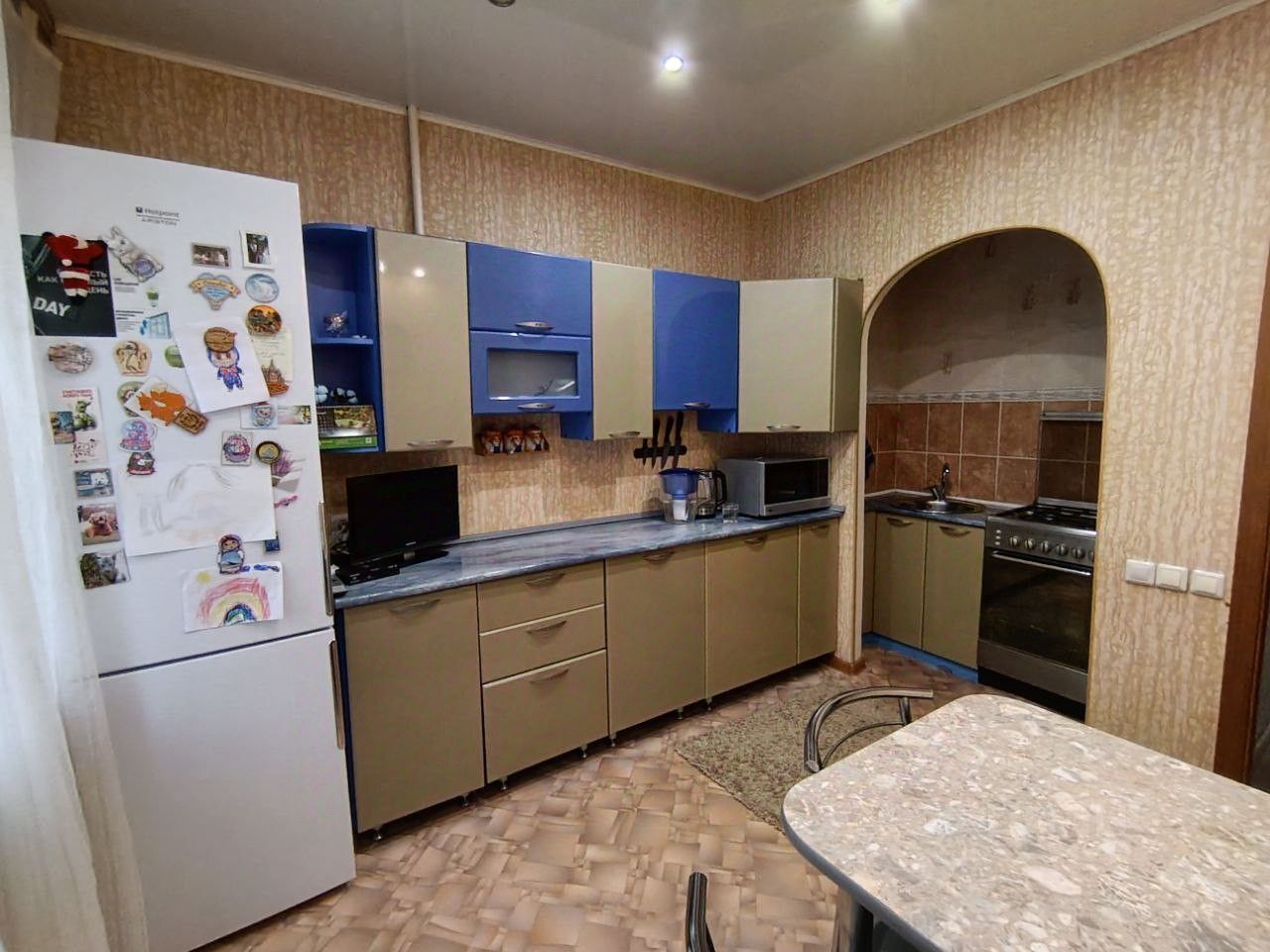 * кухня расширена (перепланировка узаконена) — теперь тут хватает места и для готовки, и для обедов,