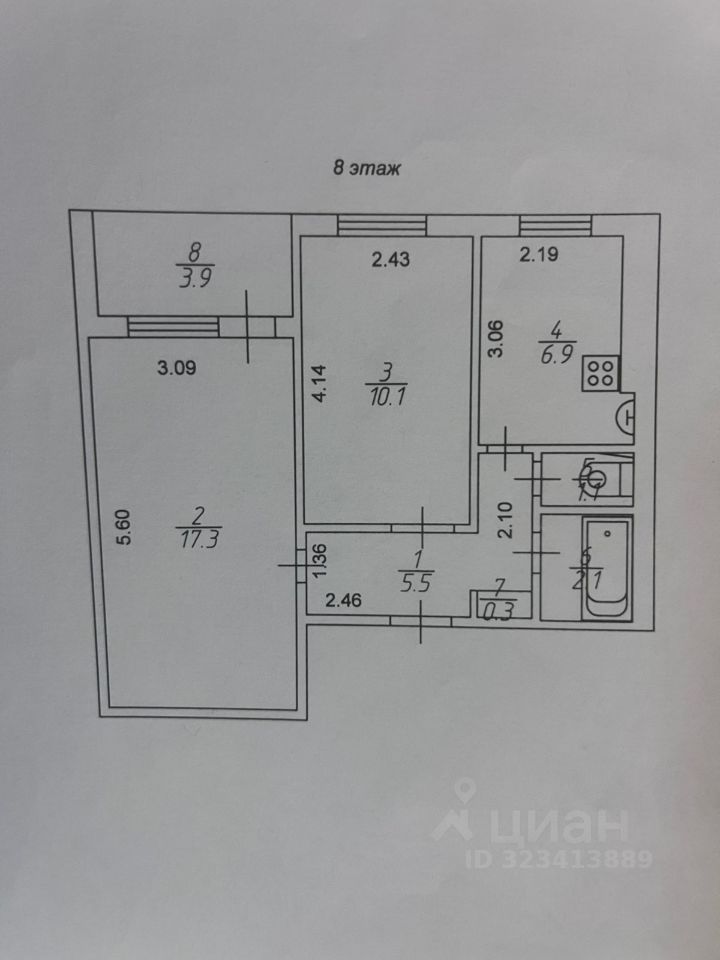 Продаётся уютная двухкомнатная квартира площадью 43.3 квадратных метра на восьмом этаже девятиэтажного дома.