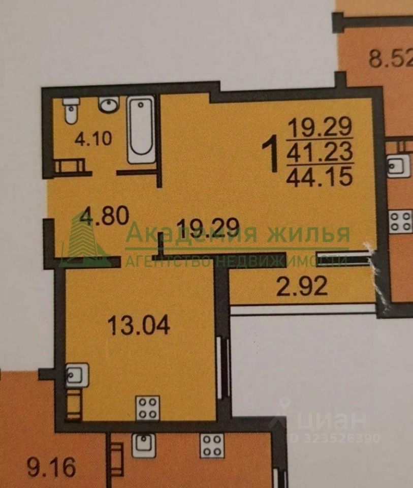 О КВАРТИРЕ: Квартира расположена на 2 этаже 24-х этажного кирпично-монолитного дома Дом электрифицирован, пониженный тариф на электроэнергию Черновая отделка, площадь 41,2 кв.м + лоджия 2,9 кв.м, остеклена В настоящее время в квартире выполнены работы по разводке водоснабжения и канализации, ведутся работы по оштукатуриванию стен Просторная комната 19,29 кв.м, кухня 13,04 кв.