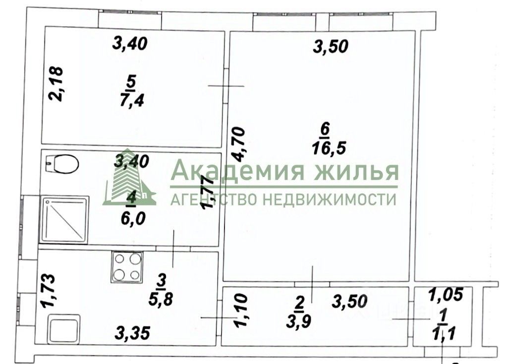 Просторная комната 16,5 кв.м, кухня 5,8, комната 7,4 кв.м, совмещенный санузел 6 кв.м