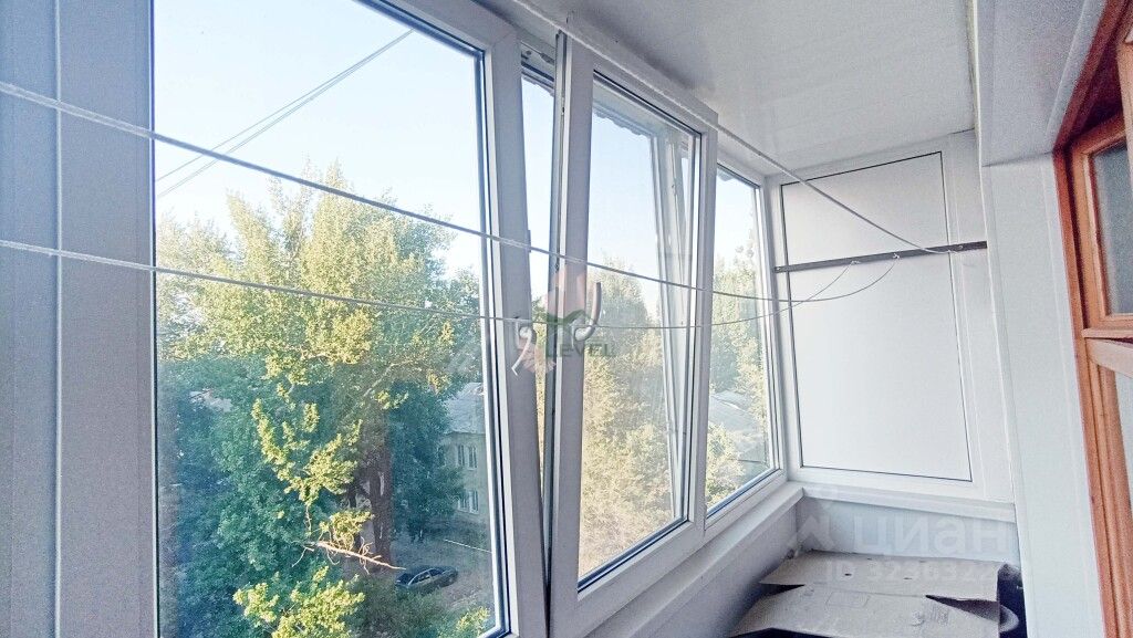 Три окна во двор, зал с балконом сбоку дома (вид на Волгу).