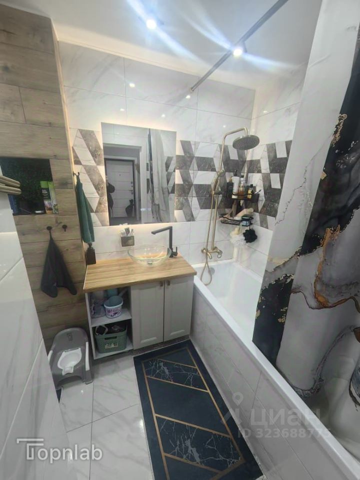 Отделка. В квартире выполнен евроремонт с применением дорогих отделочных материалов. На полу в зоне кухни и прихожей плитка, в остальных компактах на полу ламинат, потолки натяжные. Санузел отделан современной плиткой и керамогранитом, установлена качественная сантехника. В квартире имеется просторная гардеробная. Квартира полностью укомплектована мебелью и встроенной дорогой техникой Electrolux.