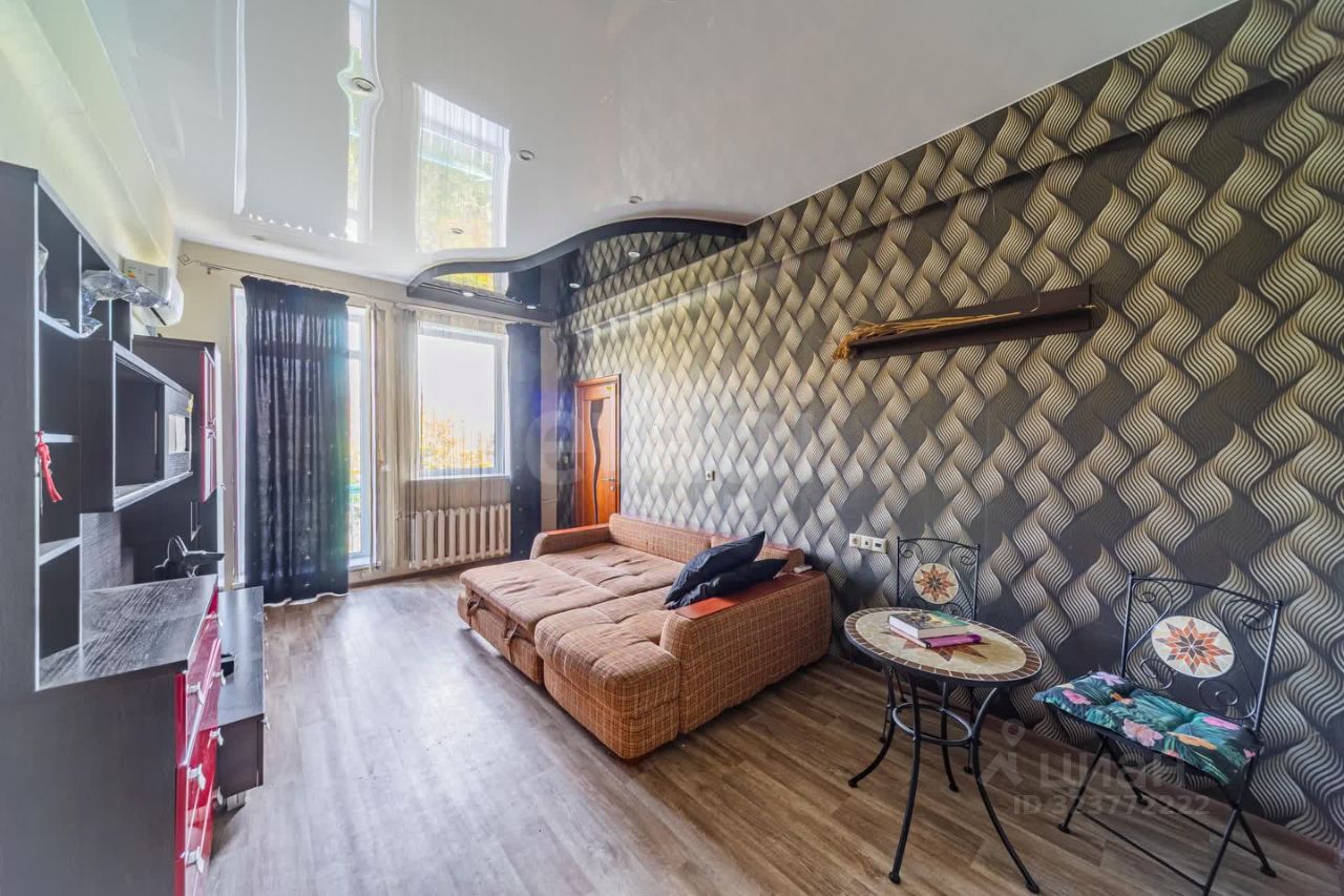 Двухкомнатная квартира расположена в ''сталинском'' доме на улице Бабушкин Взвоз на набережной. Здание отличается капитальностью конструкции: бетонные перекрытия, асфальтированный внутренний двор с местами для парковки. Минимальное количество квартир на этаже обеспечивает повышенный уровень приватности. Ключевым преимуществом является вид на Волгу, открывающийся из окон. Высота потолков 3 метра визуально расширяет пространство и усиливает ощущение простора. Планировка функциональна и рациональна: две комнаты (площадью 20 и 9 кв. м) и просторная кухня-гостиная 13 кв. м, большой санузел с душевой кабиной. Благодаря высоким потолкам удалось организовать продуманную систему хранения, интегрированную в интерьер. Вся мебель, деревянный стол, чугунные батареи и новый кондиционер остаются новому владельцу. Большие окна в гостиной обеспечивают excellentную инсоляцию. В летнее время на балконе располагается садовая мебель.