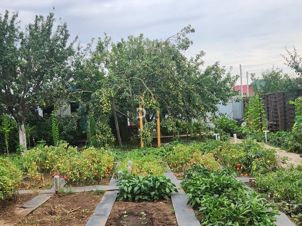 Участок ухоженный, с плодоносящим садом, полным деревьев и кустарников, а также с разнообразными овощными культурами и невероятно сладким виноградом!