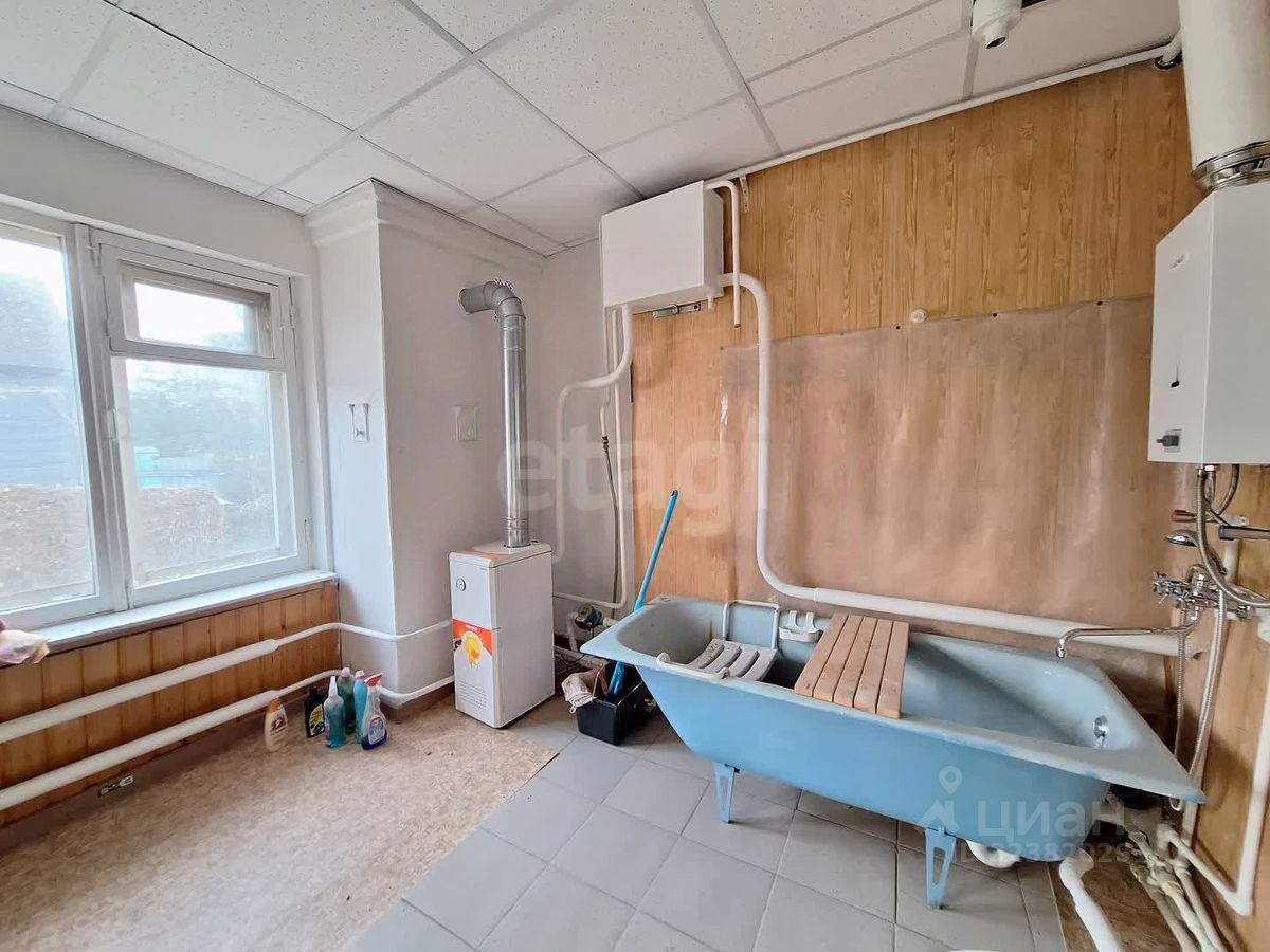 Дом 1957 года, построен добротно: деревянный с кирпичной пристройкой. Прочные стены, новая крыша, забетонированная заваленка — дом крепкий, не требует капитального ремонта. В доме высокие потолки. 4 комнаты (одна проходная) с новым ремонтом: ламинат, пластиковые окна, выровнены стены и потолки (готовы под покраску или обои). Просторный санузел, кухня и сени удобно для жизни. Все коммуникации: отопление газовый котёл, горячая вода газовая колонка, центральное водоснабжение, выгребная яма.