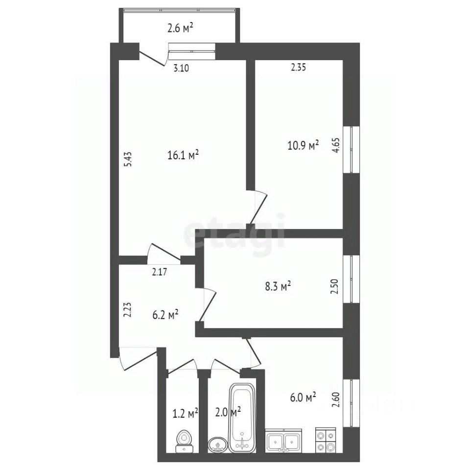 Представляю к продаже трехкомнатную квартиру 50,6 кв.м. в районе КПТ, на 3 этаже пятиэтажного дома.