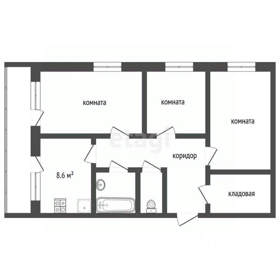 Квартира улучшенной планировки, с просторной кухней 8,6 квадратных метров, раздельным санузлом, изолированными комнатами, просторным коридором, кладовой, 6-ти метровой лоджией.