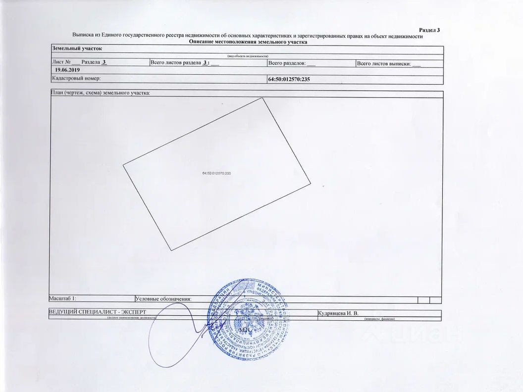 Кадастровый номер 64:50:012570:235 . Полная стоимость в договоре.
