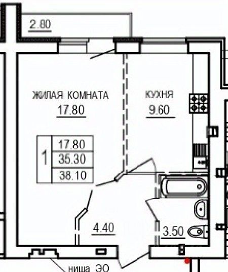 Общая площадь38,1 м2